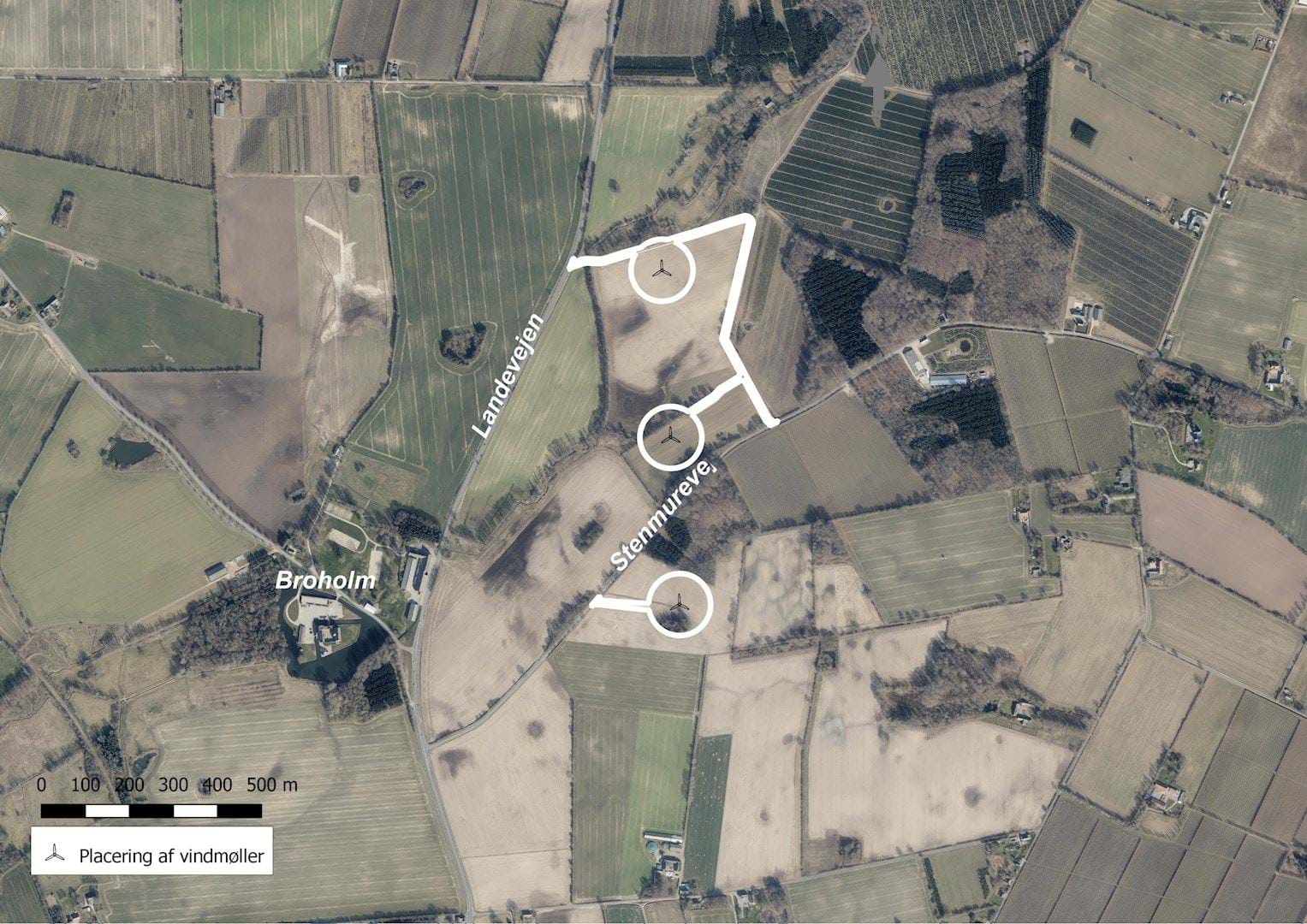 Ejerne af Broholm Gods og Fuglehavegård har i maj 2018 ansøgt om, at opstille tre ens vindmøller med en totalhøjde på knap 150 meter øst for Broholm Gods og Landevejen i Svendborg Kommune. Ejerne ønsker, med opstilling af tre vindmøller, at bidrage til en mere klimavenlig energiproduktion og dermed reducere CO2 udledningen generelt og bidrage positivt til Svendborg Kommunes CO2 regnskab.