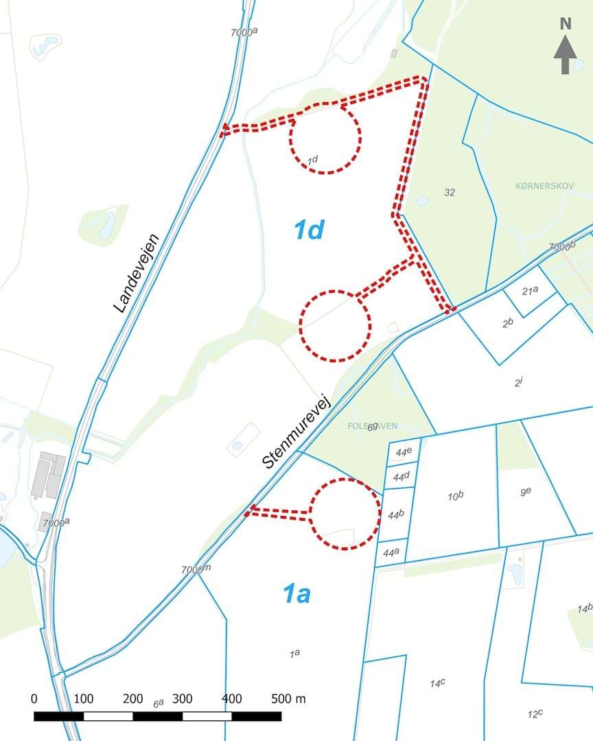 Der er kun få naboejendomme på de strækninger langs Landevejen og Stenmurevej, som ligger tættest på de planlagte vindmøller.