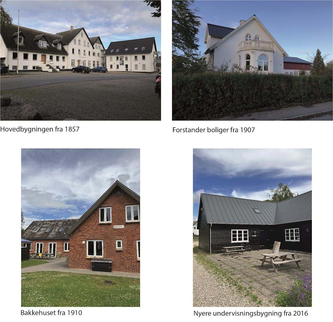 Indenfor planområdet findes flere bygninger, som alle understøtter skolens formål, herunder undervisningslokaler, kantine, beboelsesbygninger, kontorer, ridehal, opbevaring mm. Al bebyggelse indenfor planområdet hører under Sydfyns Fri Fag- og Efterskole.