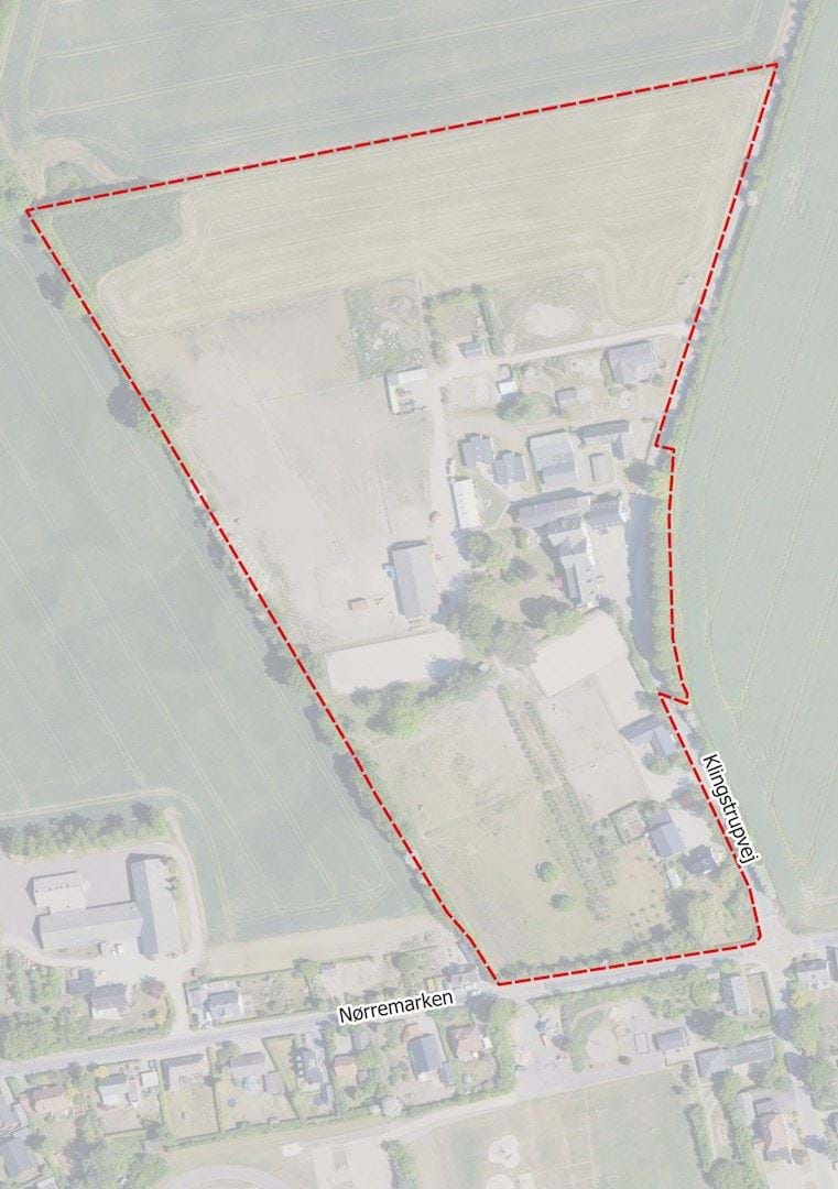 Lokalplanområdet er beliggende i udkanten af det nordlige Skårup by mellem Nørremarken og Klingstrupvej og omfatter, ved lokalplanens udarbejdelse, matr.nr. 72 Skårup By, Skårup, matriklerne 1h og 1d ved Klingstrup Hgd., Skårup. Lokalplanområdet udgør et areal på ca. 7,3 ha og er beliggende i landzone, men ved lokalplanens vedtagelse vil dele af området få status af byzone.