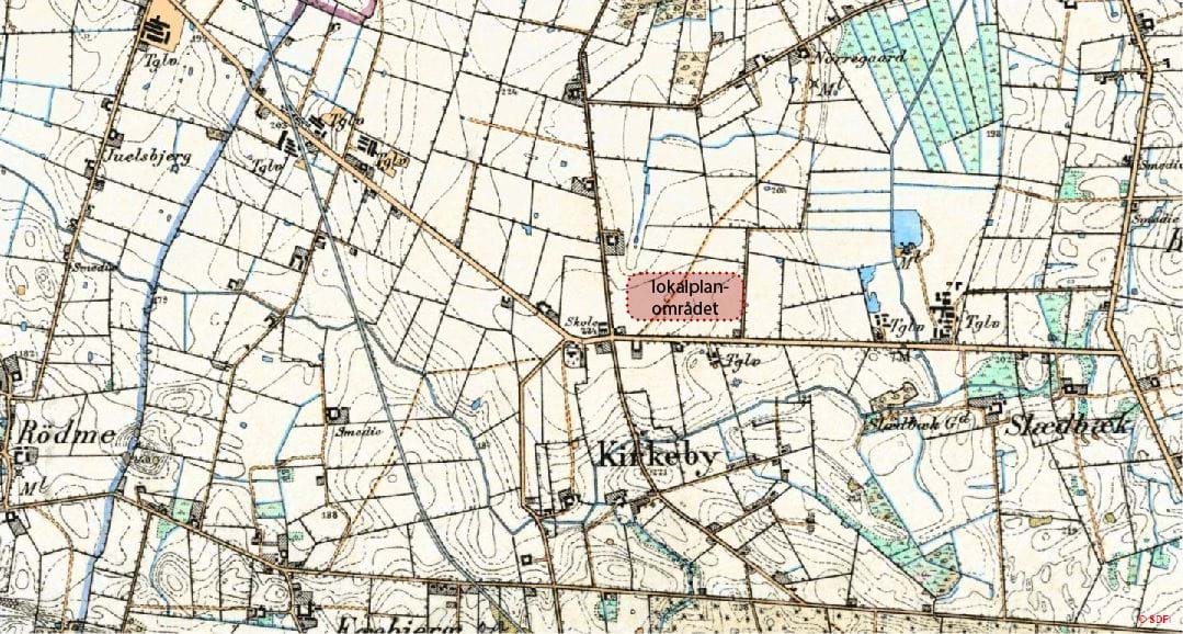 Kirkeby, syd for landevejen imellem Odense og Svendborg