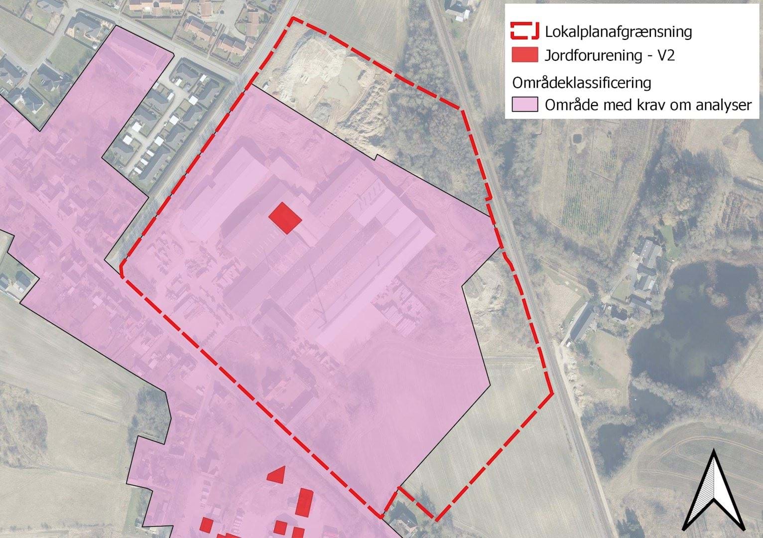 Et mindre areal inden for lokalplanområdet er kortlagt i forhold til jordforurening på