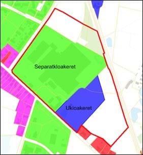 Kortudsnit der viser hvilket områder der er separatkloakeret og hvilket område der er ukloakeret.