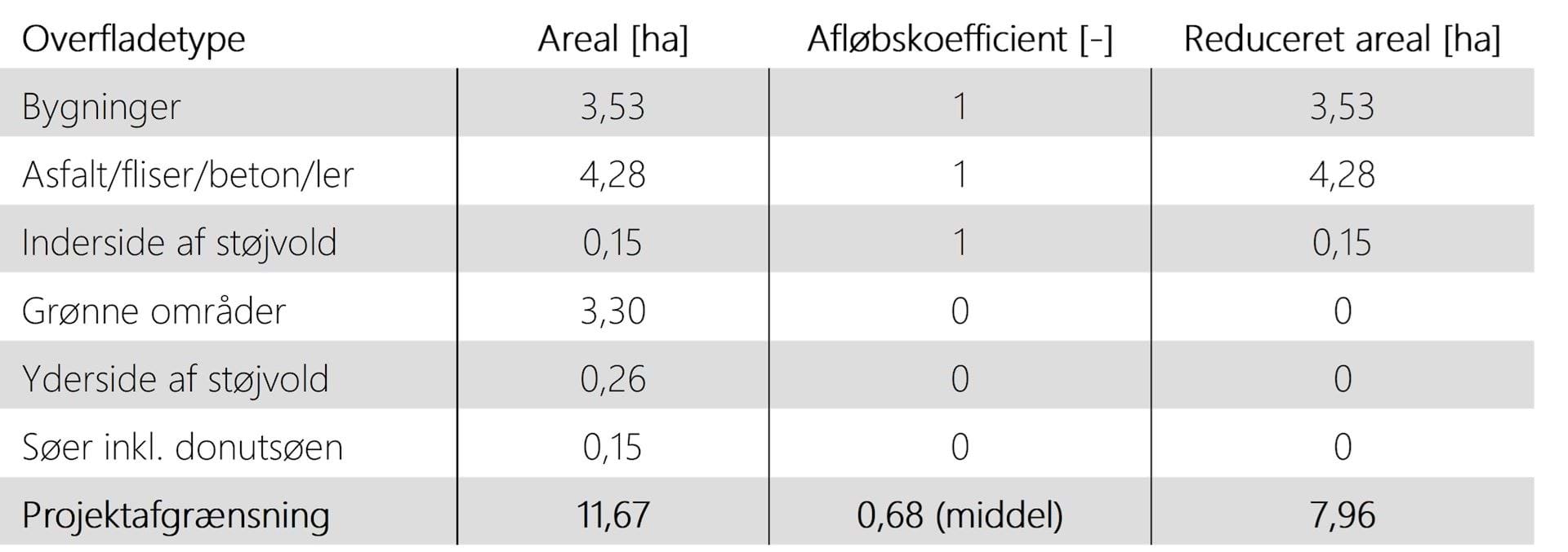 Til beregninger i forhold til tag- og overfladevand skal anvendes følgende afløbskoefficienter: