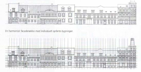 Eksempel på facadeproportionering ud fra lodrette og vandrette linjer