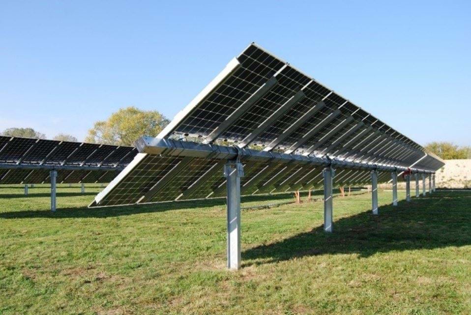 Solpanelerne opstilles i nord/syd orienterede parallelle rækker, monteret på et stativ med motordrevet tracking: panelernes hældning følger solen. Panelerne orienteres mod øst ved solopgang, hvorefter de følger solen i løbet af dagen, ved først at dreje til vandret omkring kl. 12:00 middag og derefter dreje videre mod vest i løbet af eftermiddagen. Panelerne opstilles i parallelle rækker med et frirum på 3-5 meter. Denne installation spreder opsamling af energi ud over hele dagen, ved at følge solens bevægelse. Installationen er, som for Fixed-tilt, maksimalt 3,5 meter over terræn. Også for trackeropstillingen tages der i maximal højden forbehold for terræn ujævnheder samt mulighed for udvikling af teknologien.