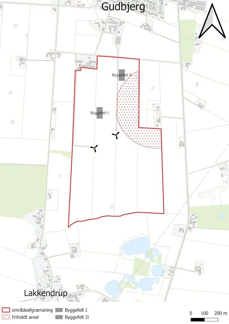 Figur 3. Byggefelt I og II, samt friholdt areal