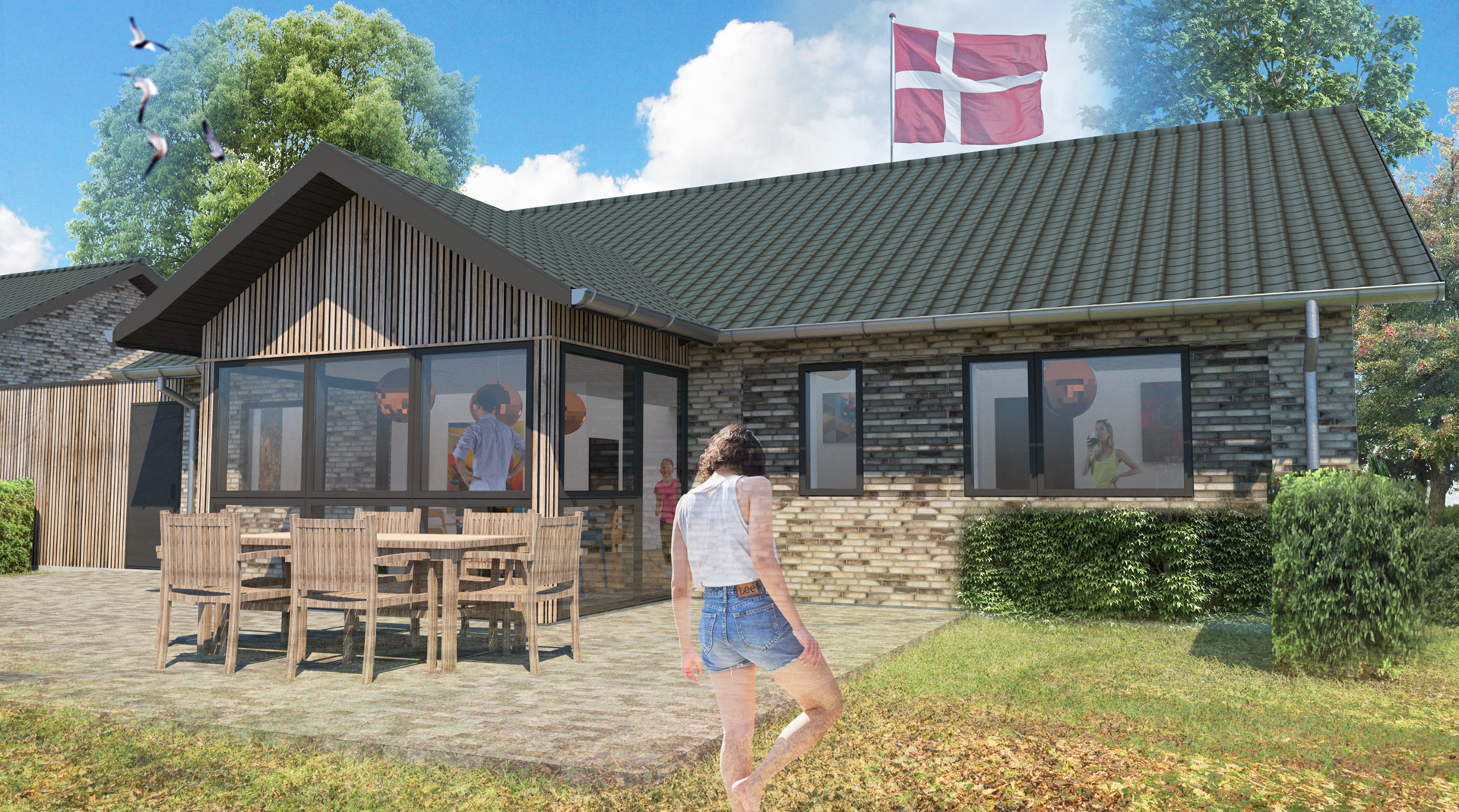 Fælleshuset skal udføres i samme byggestil som den øvrige del af boligområdet, så det indpasses naturligt.